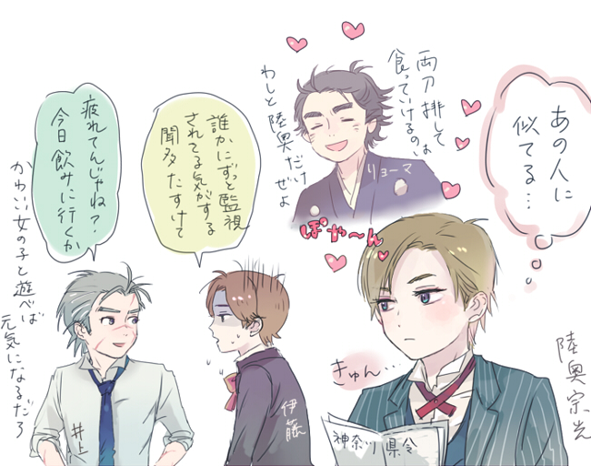 坂本も伊藤も、両人ともに陸奥君とは生い立ちや性格が真逆なわけですが、陸奥君はある意味、「自分に無いステキな要素をたくさん持つ人」として、坂本さん伊藤くんを心から敬慕していたのではないかな、と…