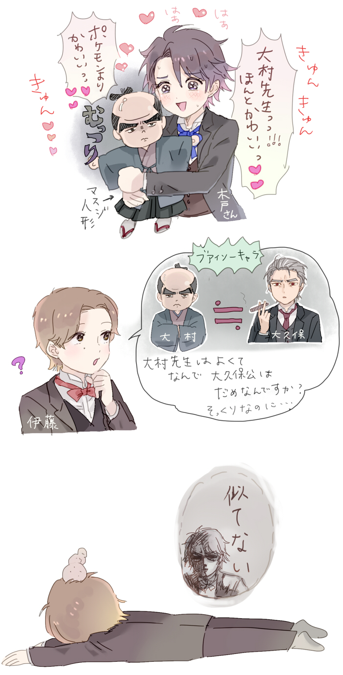 左から、児玉源太郎・西郷従道・桂太郎 なんでこの3人…取り合わせおかしい(ホンとは大山巌描こうとしてたんだけど時間なかったんです)