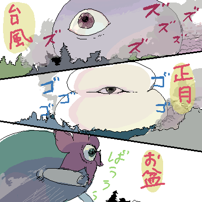 ・雷こわい。雷が鳴ると季節に関係なく蚊帳の中に飛び込む。